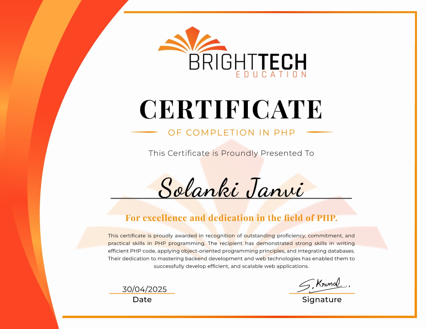 php intership certificate